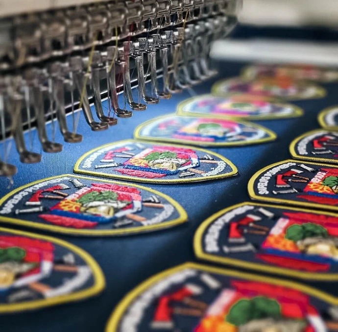 En lugar de bordar directamente sobre la prenda, el diseño se borda primero sobre un soporte textil y posteriormente se aplica como parche bordado.