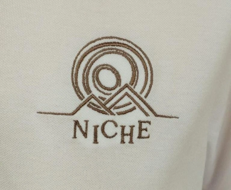 El bordado funciona especialmente bien con logotipos claros, textos y símbolos definidos. Este tipo de diseños mantienen mejor la forma con hilo y ofrecen un resultado limpio y elegante en prendas de trabajo.