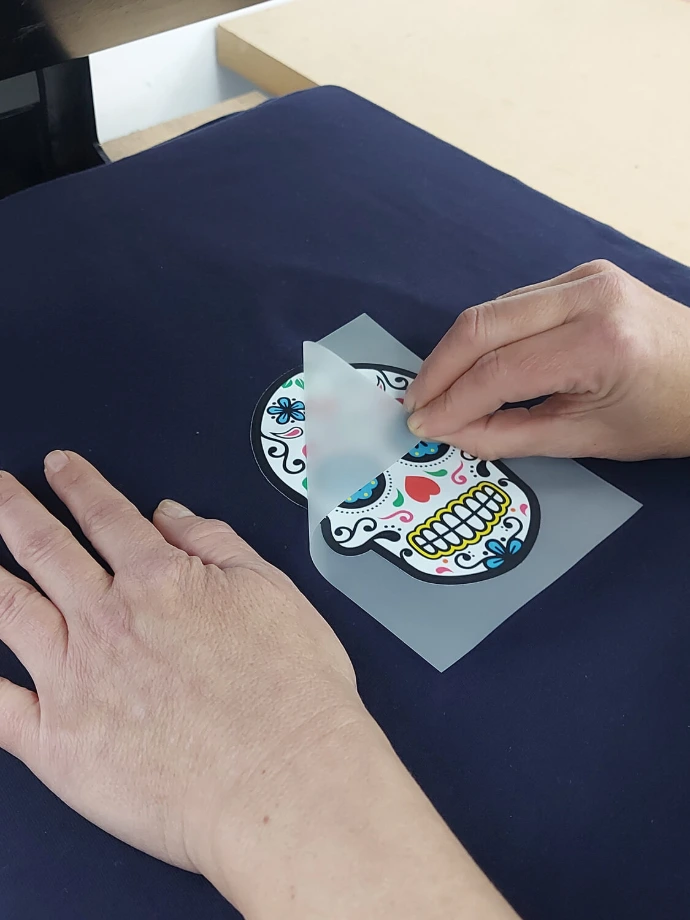 Después, el diseño pasa por un horno para activar el adhesivo y, finalmente, se transfiere a la prenda mediante calor con una plancha profesional. Este proceso garantiza una buena adherencia y un acabado flexible, válido para distintos tipos de tejidos, manteniendo el color y el detalle del diseño.